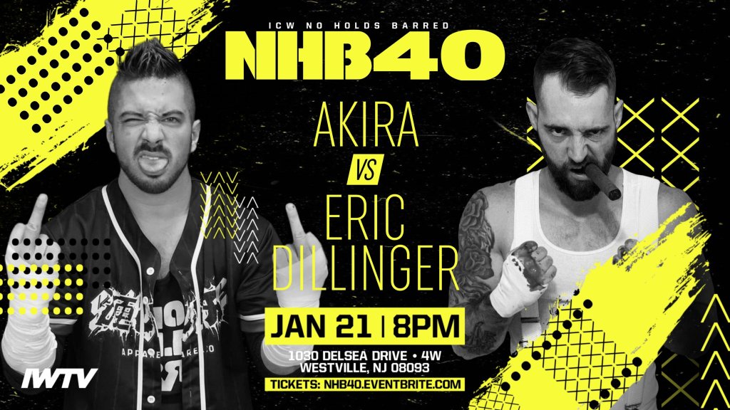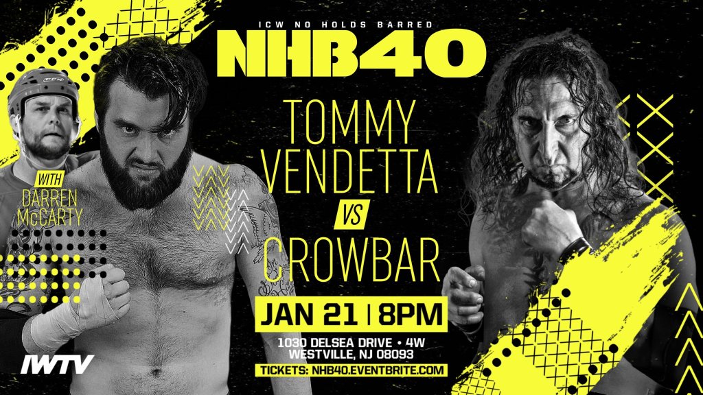And with that, we have the full line up for NHB 40! Be sure to check this show out when ICW goes live on IWTV on January 21st at 8 PM EST. And you can follow ICW on Twitter for updates on all future No Holds Barred events.