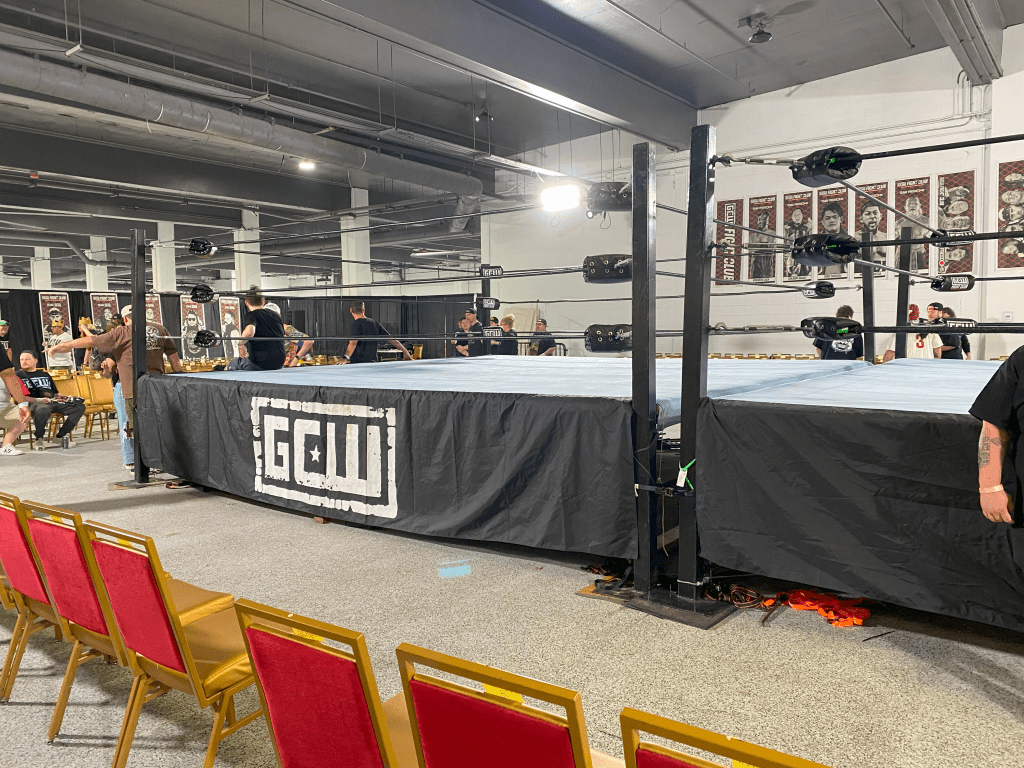 With this being my first time in The Showboat, its an obviously fact that I never had the chance to step foot in the famed Carousel Room that Game Changer Wrestling had played to so many times before. Upon my arrival from the well over three-hundred mile journey to The Showboat from my home, I saw the famed ceiling of the room where I had watched so many great matches and moments unfold from my screen. Alex Colon’s famous threepeat of Tournament of Survival, Rickey Shane Page & 44.OH! being pelted with trash after defeating Nick Gage at Run Rickey Run, Jun Kasai’s initial return to America at They Said It Couldn’t Be Done. Despite the fact that Pac-Man & Inky were sitting where blood was once shed, I couldn’t help but crack a smile thinking about all the cool things that once happened in this room. I may not have gotten to experience it first hand, but I still could feel the energy.
